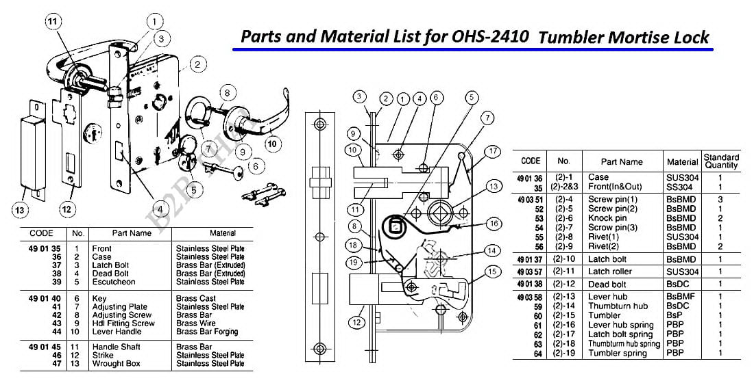 PART FOR TUMBLER MORTISE LOCK, OHS#2410, #4, DEAD BOLT