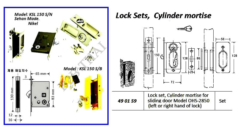 LOCK SET CYLINDER MORTISE FOR SLIDING DOOR, OHS#2850