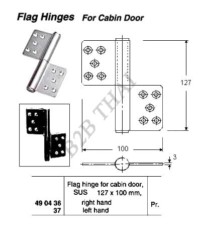 FLAG HINGE FOR CABIN DOOR, SUS, LEFT HAND, L127 x W100 MM