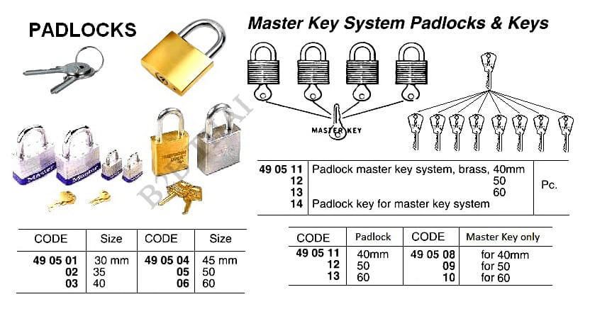 IMPA490512 MASTER KEY SYSTEM BRASS PADLOCK, 50 MM