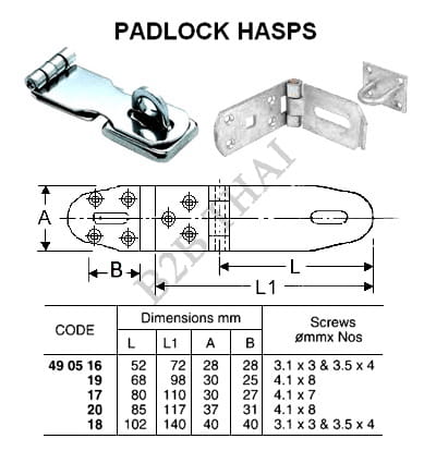 IMPA490516 PADLOCK HASP, L52 x W28 MM