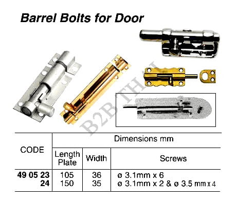 BARREL BOLT FOR DOOR, L105 x W36 MM