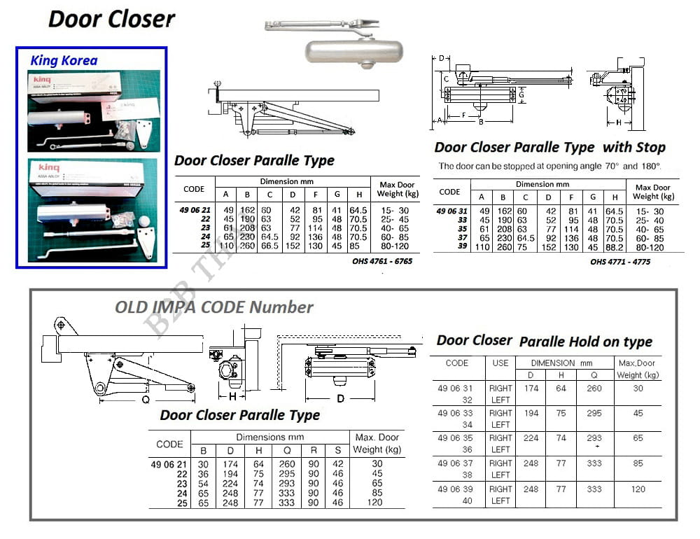IMPA490639 DOOR CLOSER, PARALLEL HOLD OPEN TYPE, RIGHT HAND, MAX DOOR WEIGHT 120 KGS