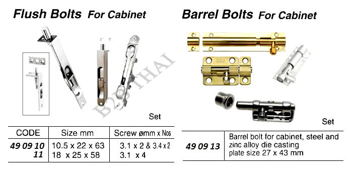 IMPA490913 BARREL BOLT FOR CABINET, PLATE SIZE 27 x 43 MM