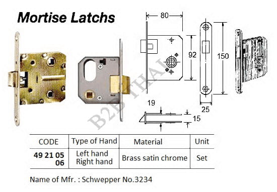 IMPA492106 BRASS SATIN CHROME MORTISE LATCHE, RIGHT HAND