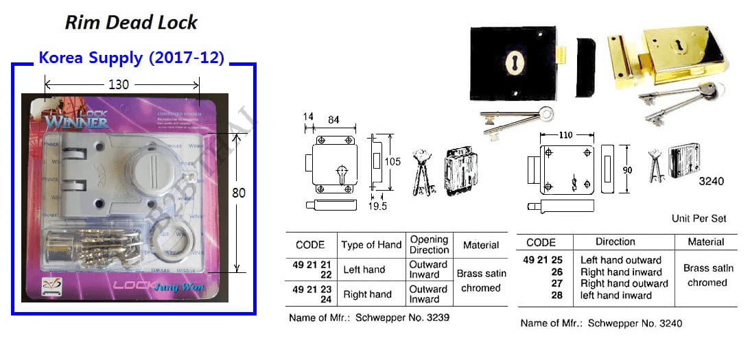 IMPA492128 RIM DEAD LOCK, LEFT HAND INWARD