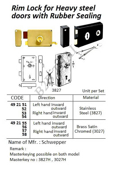 IMPA492154 RIM LOCK FOR HEAVY STEEL DOOR WITH RUBBER SEALING, ST.STEEL, RIGHT HAND OUTWARD, 3827