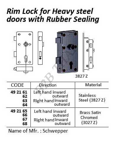 IMPA492168 RIM LOCK FOR HEAVY STEEL DOOR WITH RUBBER SEALING, BRASS SATIN CHROMED, RIGHT HAND OUTWARD, 3027 Z