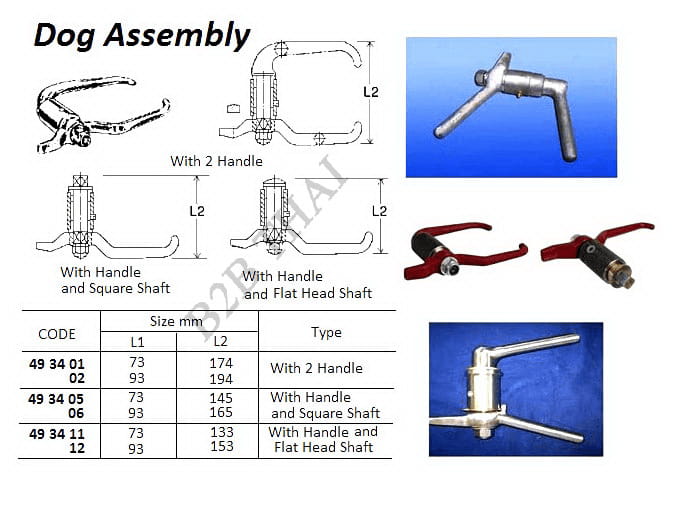 IMPA493406 DOG ASSEMBY WITH HANDLE AND SQUARE SHAFT, 93 x 165 MM