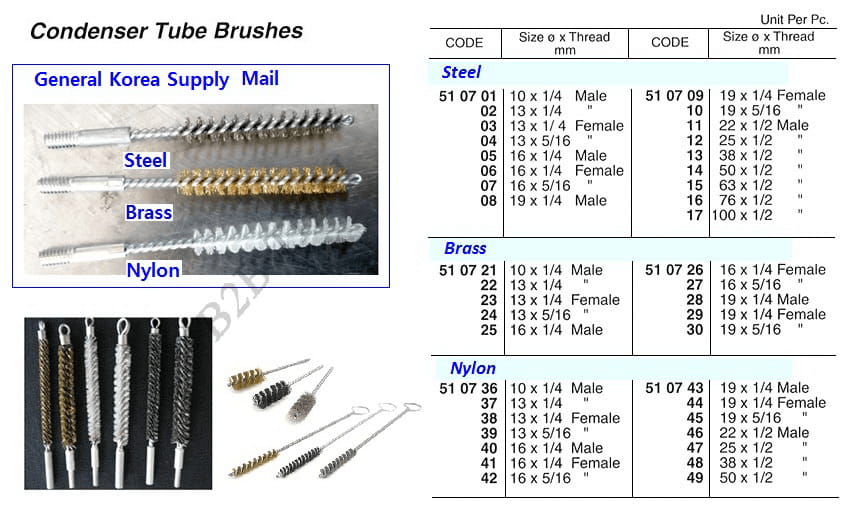 CONDENSER TUBE BRUSH, NYLON, 13 MM x 1/4″ MALE THREAD