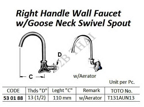 IMPA530187 RIGHT HAND WALL FAUCET WITH GOOSE NECK SWIVEL SPOUT 20(3/4)