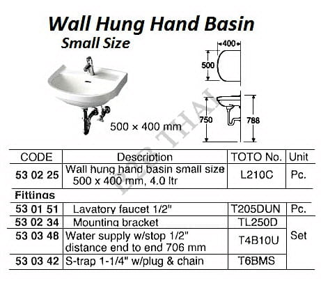 IMPA530225 WALL HUNG HAND BASIN, SMALL SIZE, L210C