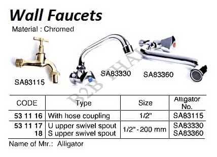 IMPA531117 WALL FAUCET, U UPPER SWIVEL SPOUT, 1/2″ – 200 MM
