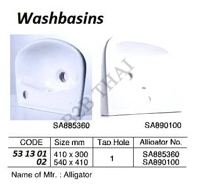WASHBASIN, WATERLINE, 1 TAP HOLE, 410 x 300 MM,