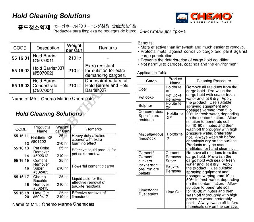 HOLD CLEANING SOLUTION, LIME OUT (#502417), 25 LTR, CHEMO MARINE CHEMICALS