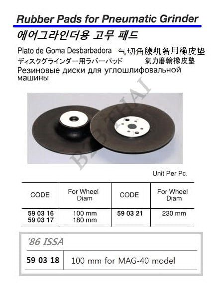 RUBBER PAD FOR PNEUMATIC GRINDER, WHEEL DIA 230 MM