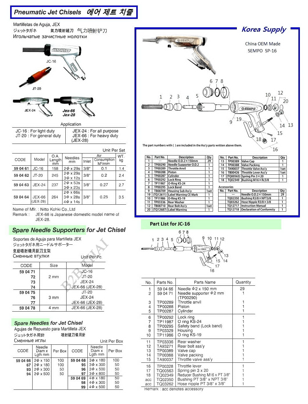 PNEUMATIC JET CHISEL, MODEL JC-16, NITTO KOHKI