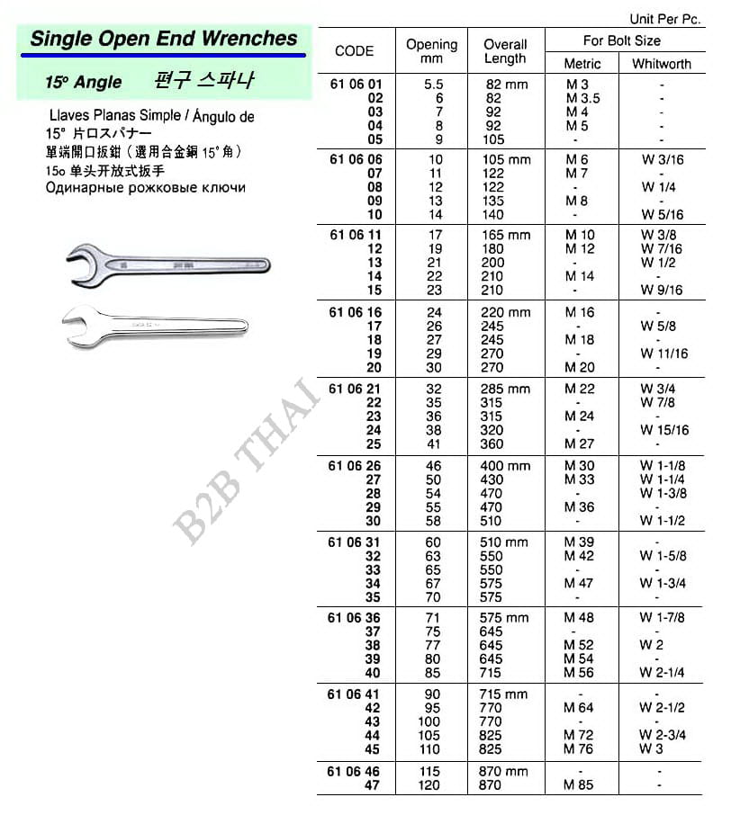 IMPA610631 SINGLE OPEN END WRENCH 60 MM