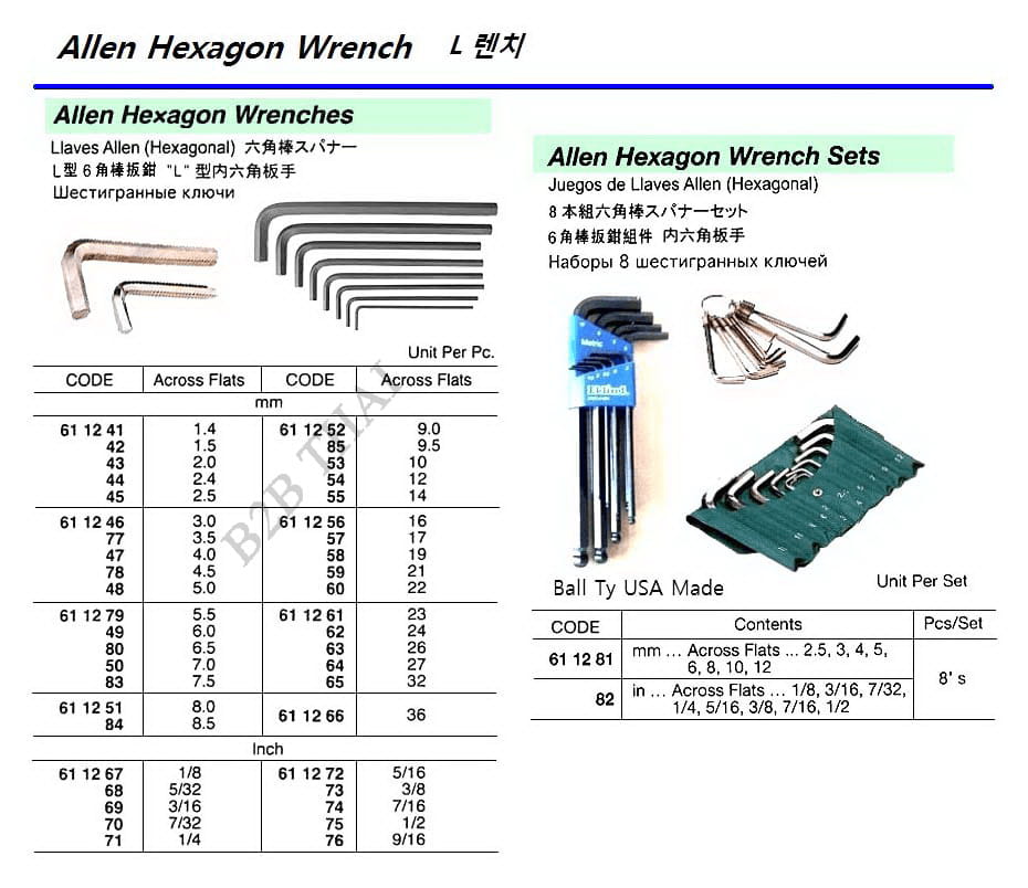 IMPA611281 ALLEN HEXAGON WRENCH SET, 2.5 – 12 MM 8’S