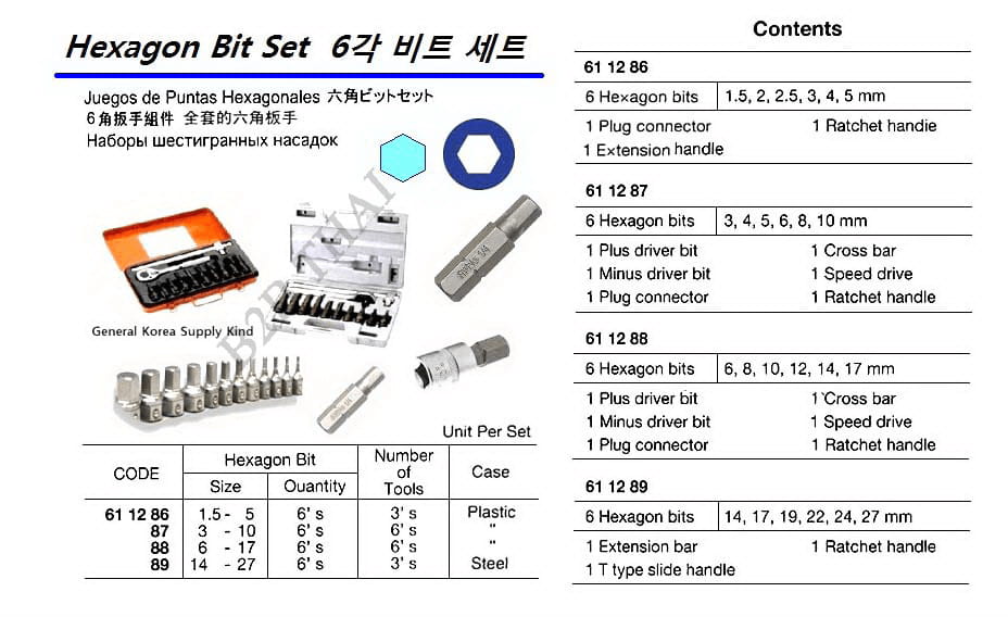 HEXAGON BIT SET, 6-17 MM 6 BITS & 6 TOOLS