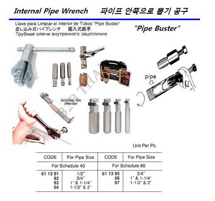INTERNAL PIPE WRENCH, “PIPE BUSTER”, FOR SHD 80, 1″ & 1-1/4″
