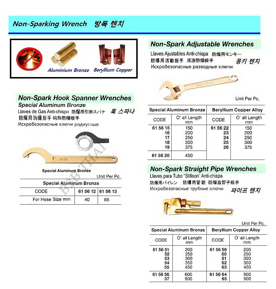 NON-SPARK ADJUSTABLE WRENCH, BERYLLIUM COPPER ALLOY, 150 MM