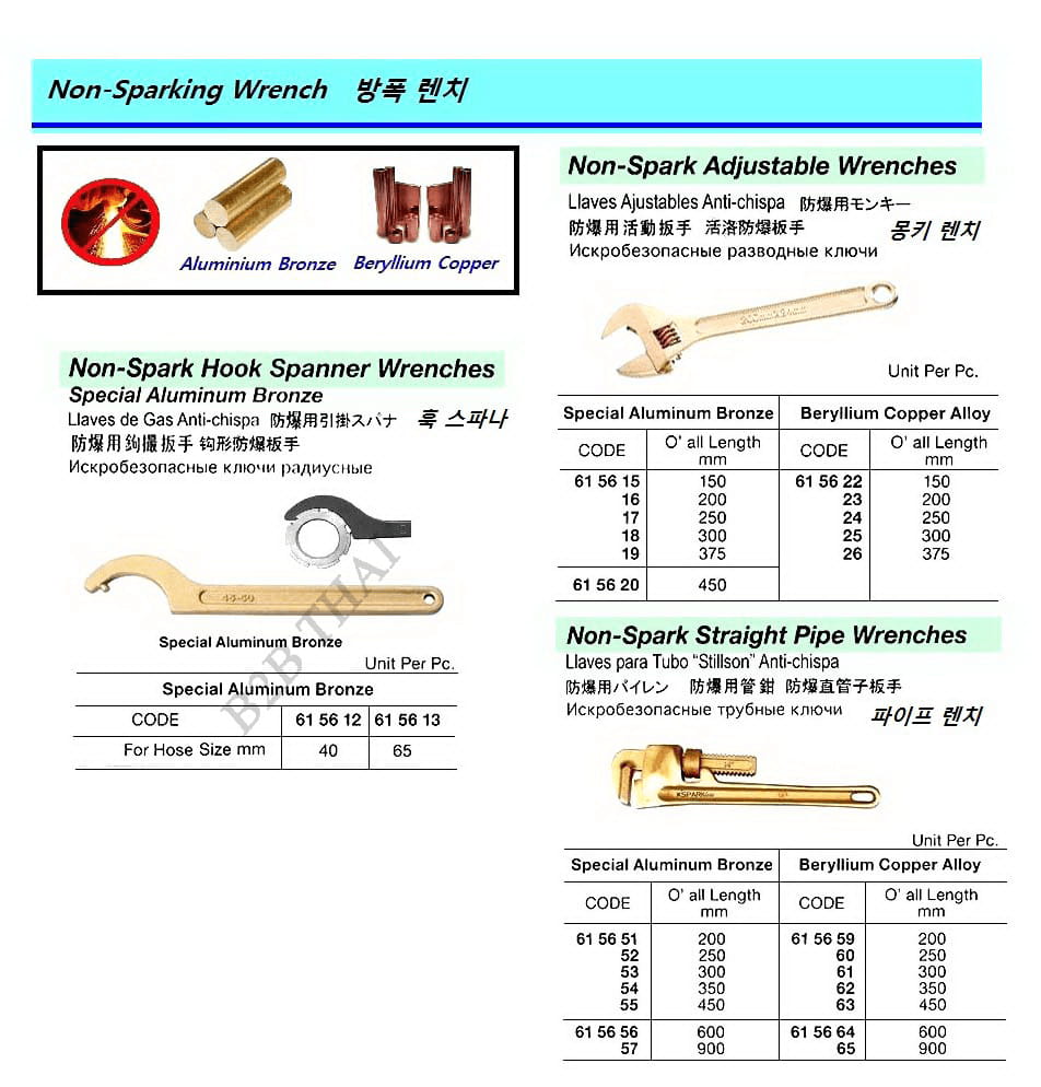 NON-SPARK STRAIGHT PIPE WRENCH, BERYLLIUM COPPER ALLOY 900 MM