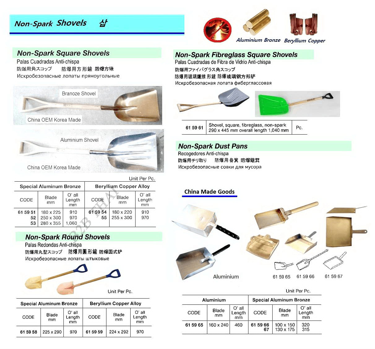 NON-SPARK SQUARE SHOVEL, BERYLLIUM COPPER, 180 x 910 MM