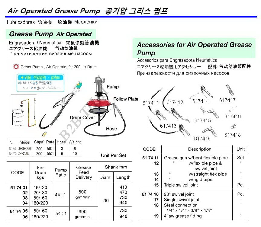 GREASE PUMP, AIR OPERATED RATIO 54:1 FOR 60 KGS DRUM