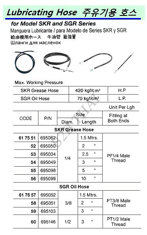 SKR GREASE HOSE, H.P. 1/4 x 2 MTR WITH FITTING PF1/4