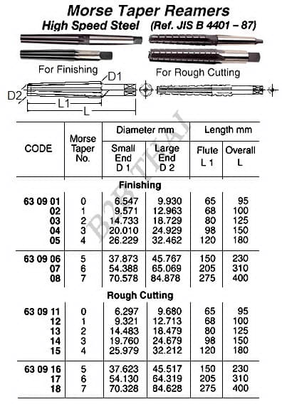 IMPA630901 MORSE TAPER REAMER, STRAIGHT FINISHING MT# 0