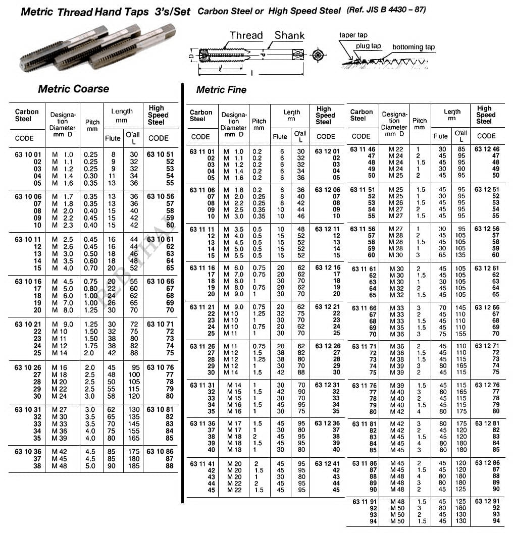 METRIC FINE THREAD HAND TAP, 3’S, HIGH SPEED STEEL, M2.5 P0.35 MM