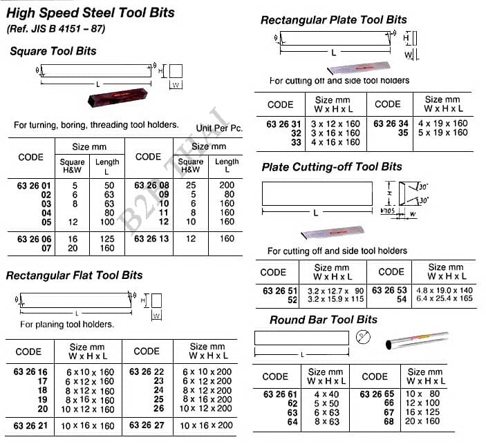 IMPA632627 RECTANGULAR FLAT TOOL BIT, HIGH SPEED STEEL 10 x 16 x 200 MM