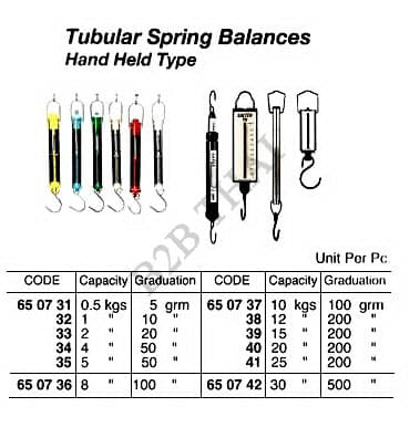 HAND HOLD TYPE TUBULAR SPRING BALANCE, CAPACITY 5 KGS