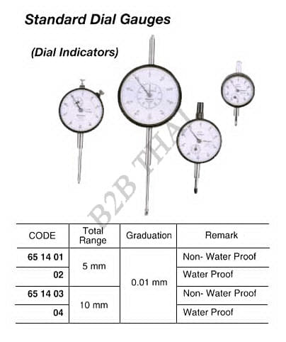 STANDARD DIAL GAUGE, 0-10 MM 0.01 MM GRAD. WATER-PROOF