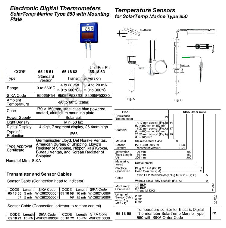 SENSOR CABLE HEAD TO INDICATOR FOR SOLAR TEMP MARINE TY 850, 10 MTR
