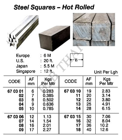 IMPA670309 HOT ROLLED SQUARE STEEL, 5.5 MTR/PC, 17 MM