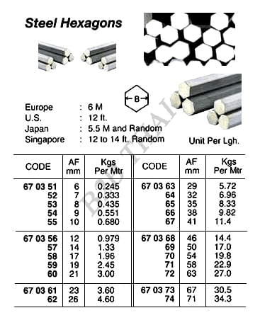 IMPA670356 HOT ROLLED HEXAGON STEEL, 5.5 MTR/PC, 12 MM