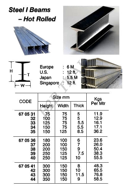 HOT ROLLED STEEL I BEAM, 5.5 MTR/PC, 180 x 100 x 6 MM