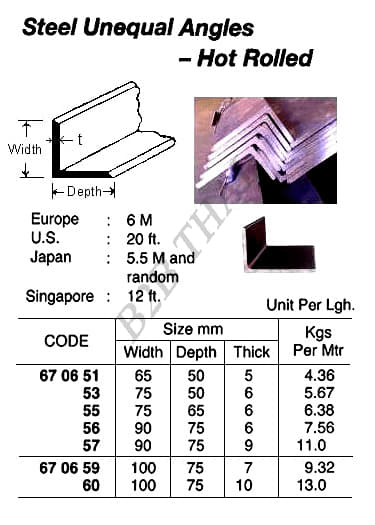HOT ROLLED STEEL UNEQUAL ANGLE, 5.5 MTR/PC, 100 x 75 x 10 MM