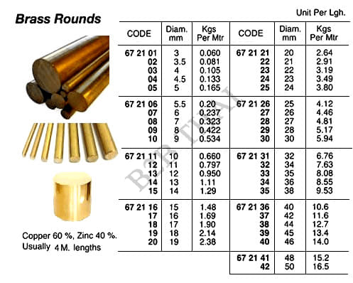 IMPA672105 BRASS ROUND, 5 MM, 4 MTR/PC