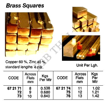 IMPA672175 BRASS SQUARE, 12 MM, 4 MTR/PC