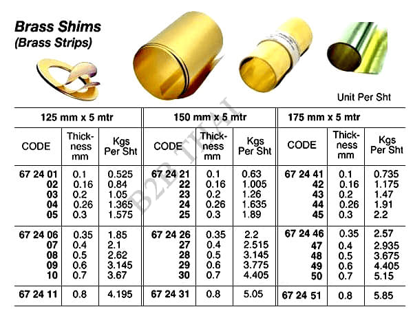IMPA672451 BRASS SHIM, 175MM x 5MTR x 0.8 MM
