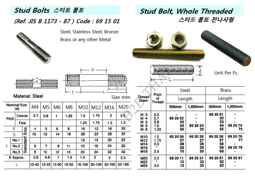 IMPA692003 STUD, WHOLE THREADED, STEEL M5 x P 0.8 300 MM
