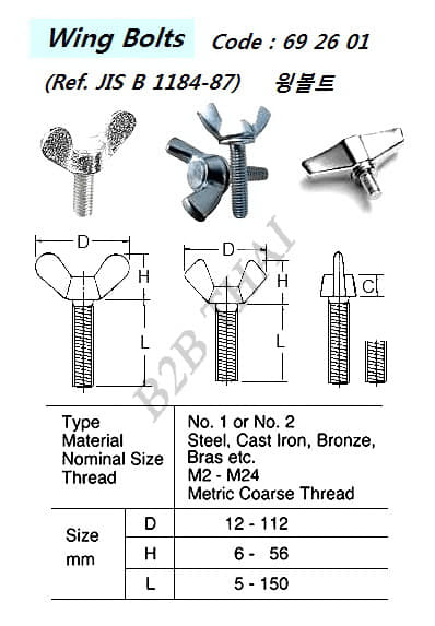 IMPA692601 WING BOLTS ( MET. SIZE, L, TYPE ? )