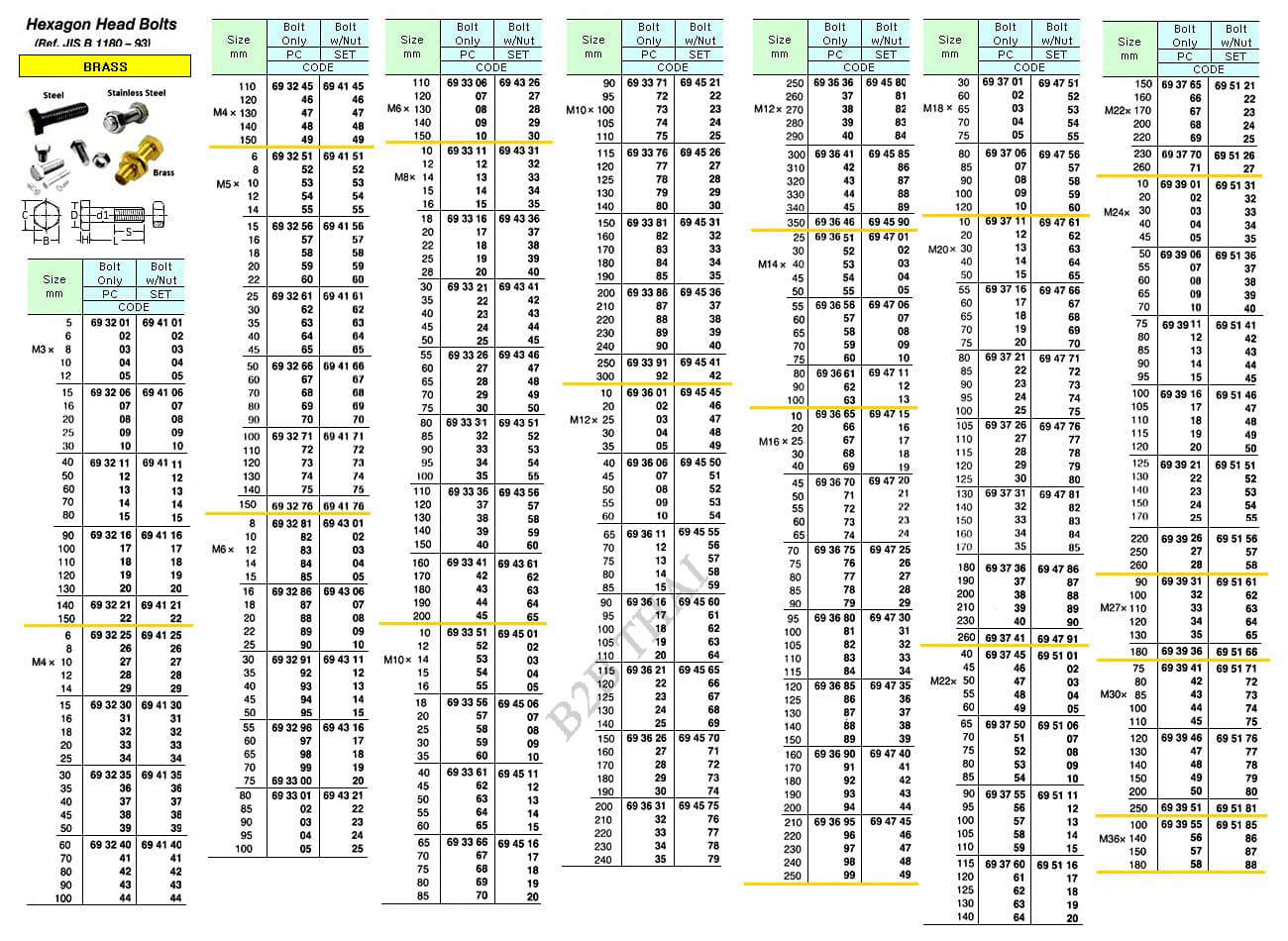 IMPA693656 HEX. HEAD BOLT ONLY, BRASS. M14 x 55 MM