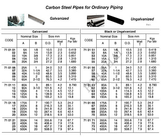 CARBON STEEL PIPE, SGP, GALV., 1/8″ (6A) x 5.5 MTR