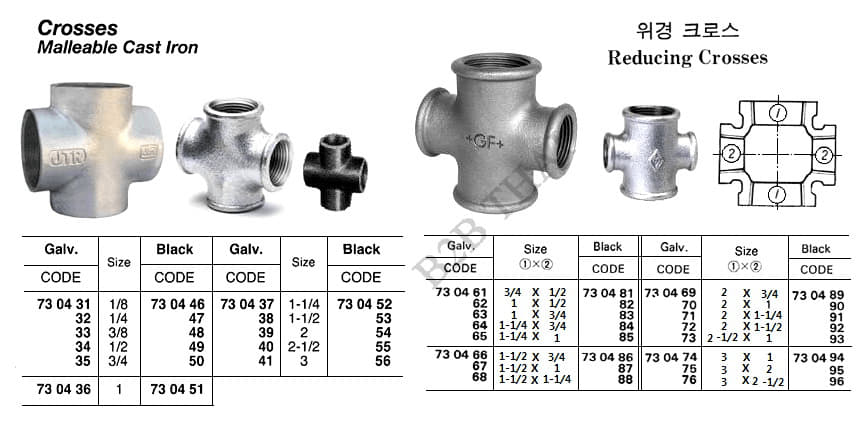 REDUCING CROSS, SCREWED, MALLEABLE CAST IRON, BLACK, 1-1/4 x 1