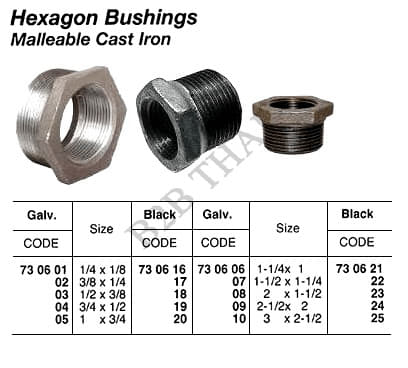 HEXAGON BUSHING, SCREWED, MALLEABLE CAST IRON, GALV, 2-1/2 x 2