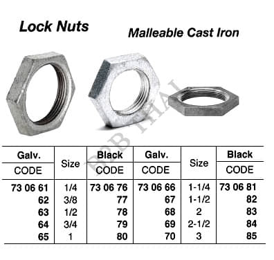LOCK NUT, SCREWED, MALLEABLE CAST IRON, GALV, 1-1/4